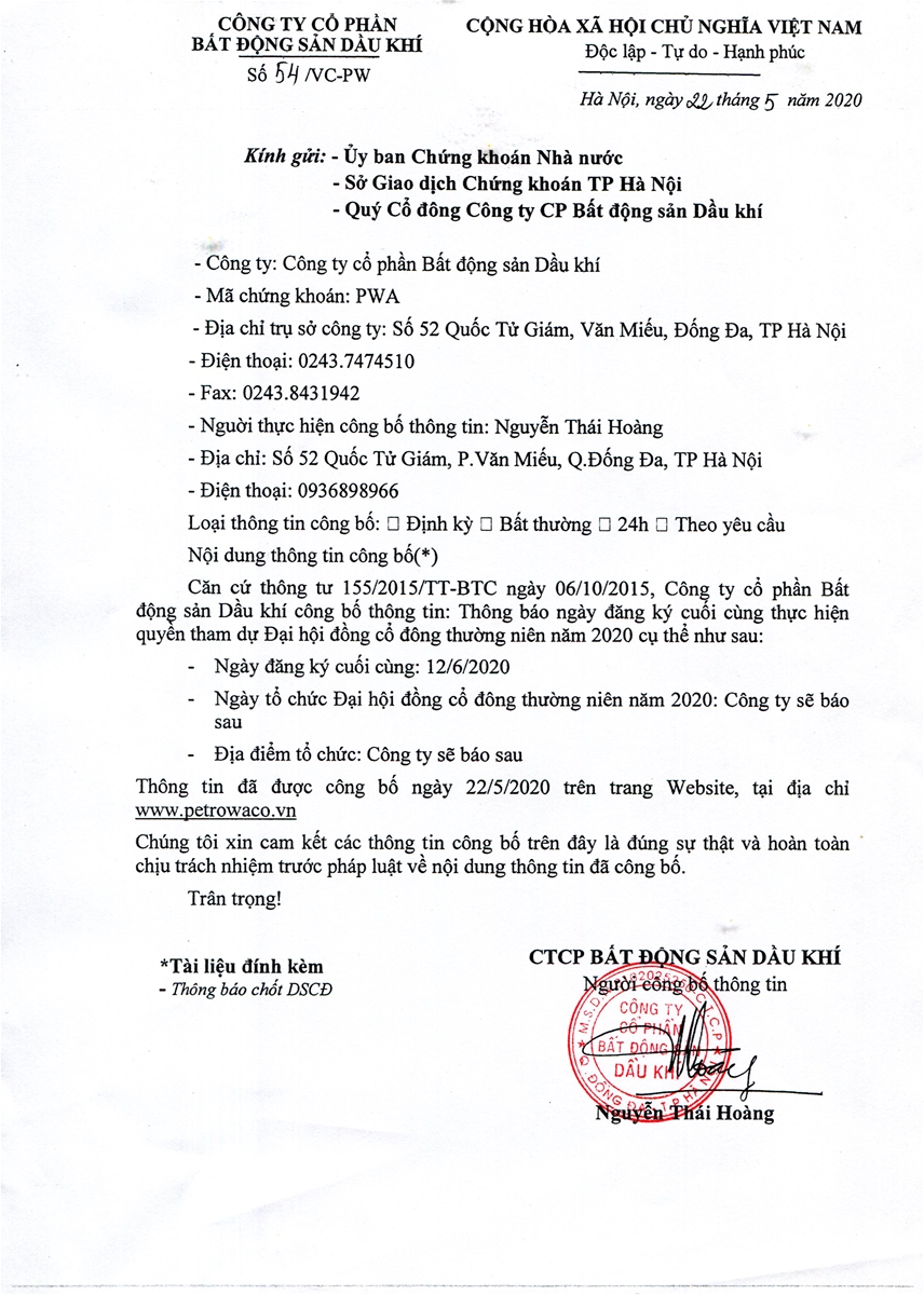 Bản công bố thông tin Đại hội đồng cổ đông năm 2020 - Lần 2
