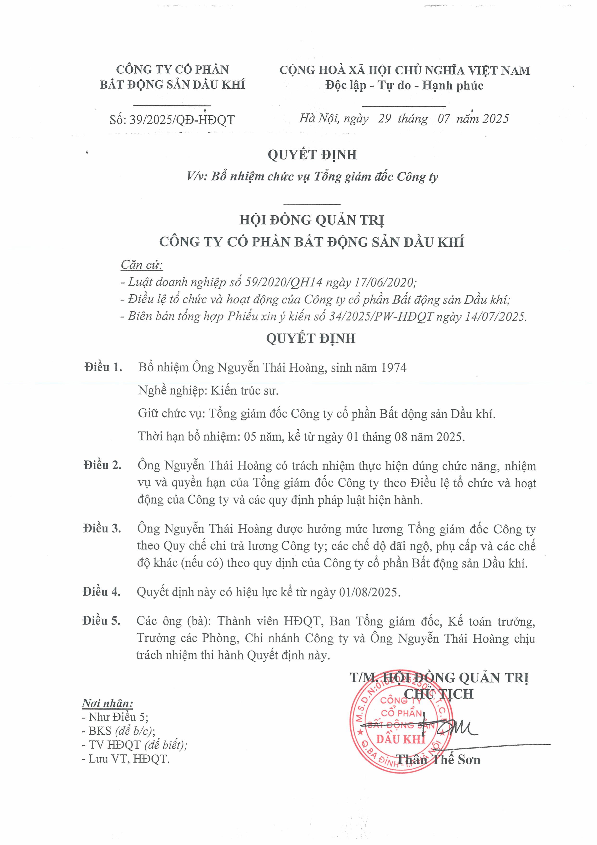 Quyết định bổ nhiệm chức vụ Tổng giám đốc Công ty Petrowaco